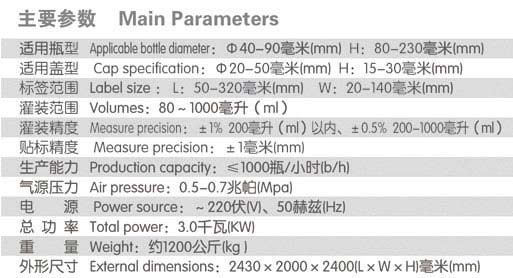 整機采用SUS304優質不銹鋼加工制造,具有優良的防腐蝕性能。該機由四個可獨立運行的氣動活塞式灌裝單元、回轉式交替抓、旋蓋頭及理蓋上蓋裝置和氣缸壓瓶機構、不干膠貼標機構組成。可一次完成灌裝、旋蓋和貼標的動作。整機具有結構緊湊、占地面積小,清洗容易,操作簡單,更換品規方便快捷的特點,適用于多品規、小批量的無粘度或高粘度物料的灌裝生產,能很大程度的節省人力資源(1人操作即可)。
