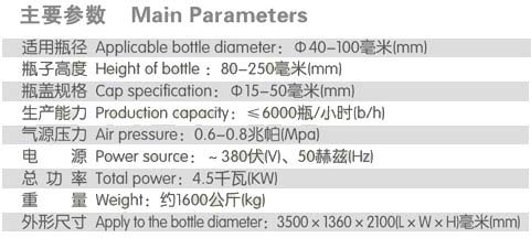 適用于不同規格玻璃瓶及塑料瓶的外蓋(含螺紋蓋)自動旋合,該機技術先進、性能可靠、產能高。